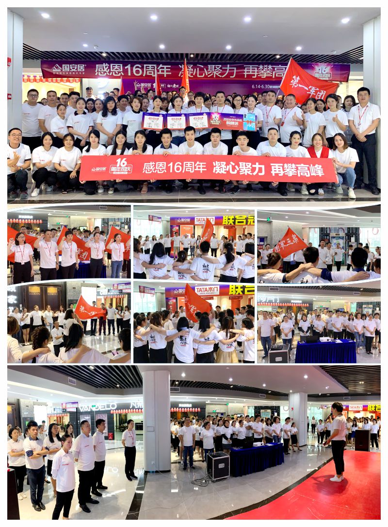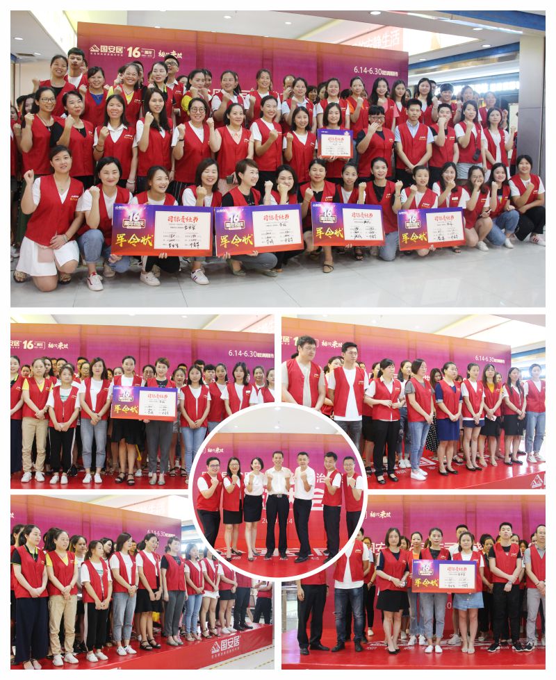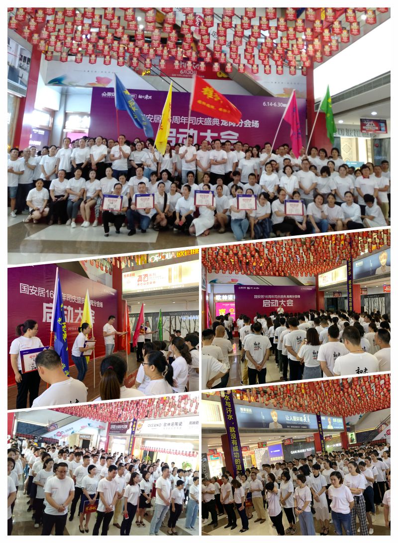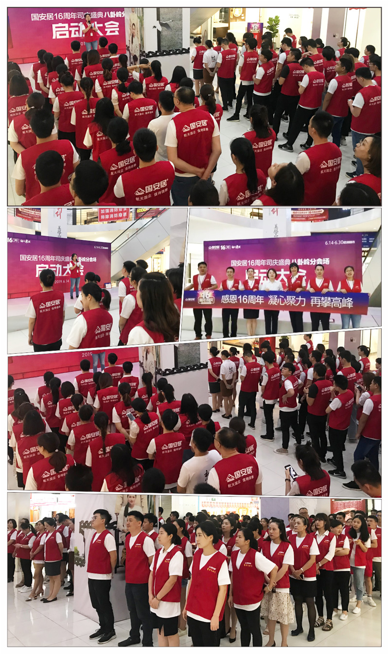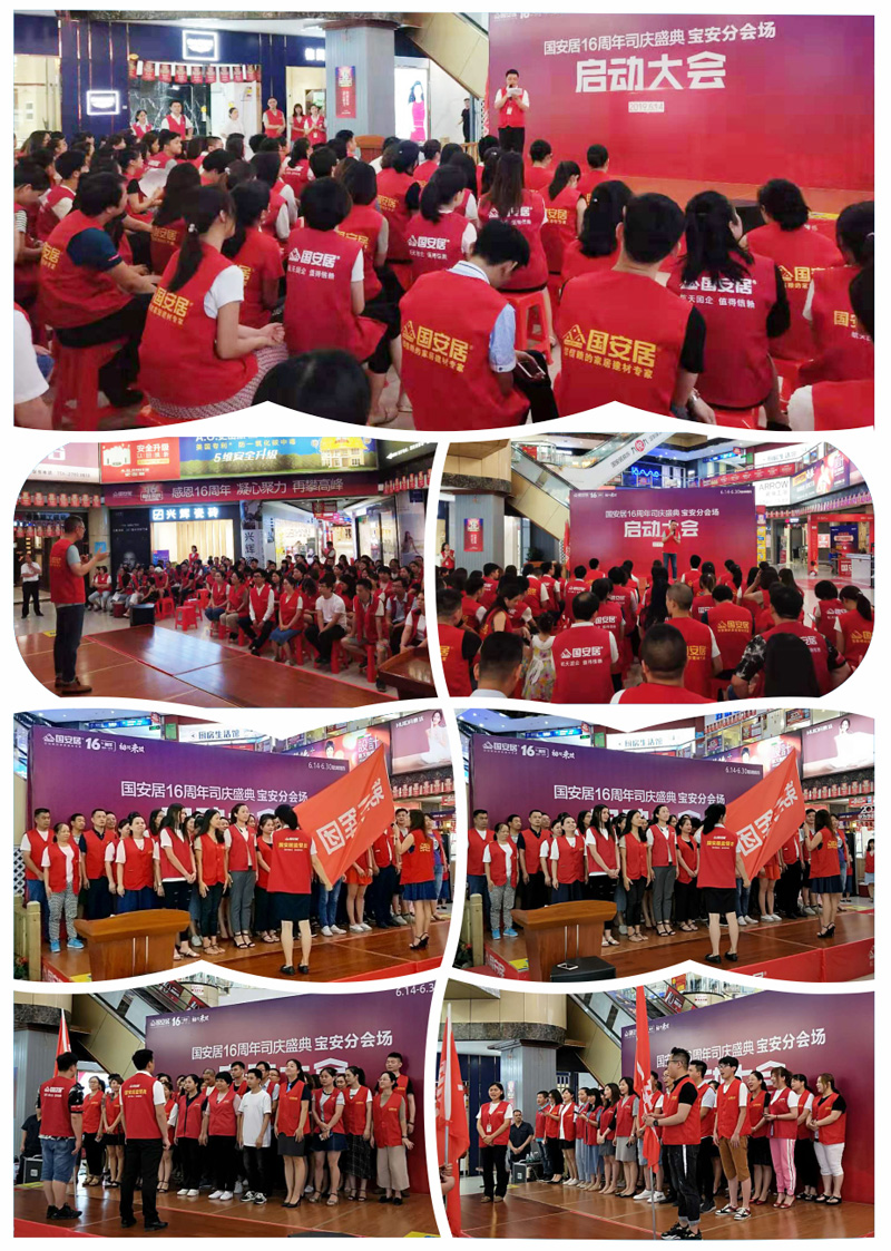 6月13日-14日,國(guó)安居“16周年司慶”啟動(dòng)大會(huì)在國(guó)安居深惠門店火熱舉行,800家品牌商家的銷售精英、員工代表、熱心市民等近萬余人共同見證了這一意義非凡的時(shí)刻。參與者身著統(tǒng)一服裝,早早就聚集在商場(chǎng)中庭,所有人都把笑容掛在臉上,展現(xiàn)出自己最陽(yáng)光、最開心、最具活力的一面。