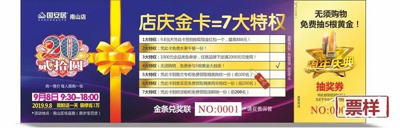 9月8日前 ,提前在國安居店面及微信20元搶購 《店慶金卡》 ,活動(dòng)當(dāng)天簽到即可尊享7重超值豪禮!