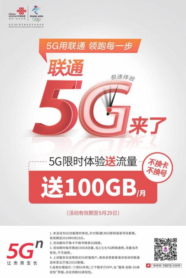 5G限時(shí)體驗(yàn)活動(dòng),月送100G B流量