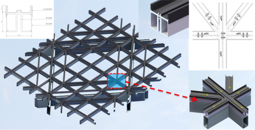 由于每一個(gè)小“盒子”的顏色都是獨(dú)一無二的,需要在生產(chǎn)階段為每一塊零件編號,并在安裝時(shí)按編號一塊一塊進(jìn)行組合。更讓項(xiàng)目部犯難的是,在根據(jù)原有方案進(jìn)行樣板安裝時(shí),“盒子”全部下垂,原因是菱形盒子突出內(nèi)層幕墻1米,難以固定支撐。后經(jīng)反復(fù)研究試驗(yàn),決定在裝盒子前,在墻上做一個(gè)外觀似蜘蛛網(wǎng)的控制體系,為每個(gè)菱形盒子準(zhǔn)確定位,將安裝精度控制在毫米級。