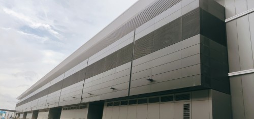 不僅如此,項(xiàng)目組在材料種類的選擇上也非??季浚耗粔θ渴褂霉I(yè)級鋁板,硬度比普通幕墻鋁板高15%,除了具備超強(qiáng)的抗變形、抗劃傷、防裂耐蝕能力之外,還能夠在潮濕環(huán)境中保持穩(wěn)定的性能。施工方負(fù)責(zé)人表示,深圳國際會展中心幕墻鋁板的平整度是普通鋁板的3-4倍,防變形能力則至少是普通材料的2倍。