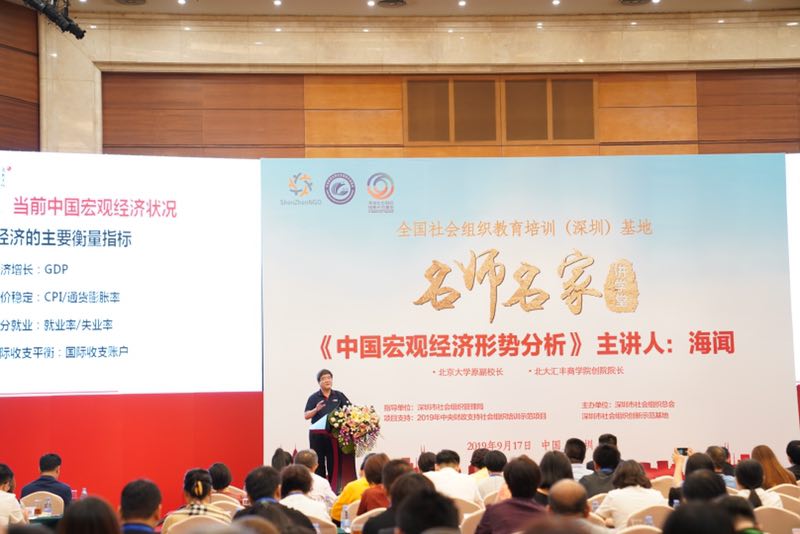 深圳新聞網(wǎng)2019年9月18日訊 9月17日下午,深圳市社會(huì)組織總會(huì)“名師名家講學(xué)堂”在五洲賓館華夏廳再次與大家見(jiàn)面??倳?huì)聯(lián)合黨委書(shū)記陳亞凱與近500名深圳社會(huì)組織、企業(yè)主要負(fù)責(zé)人一起,聆聽(tīng)匯豐商學(xué)院創(chuàng)院院長(zhǎng)海聞教授主講《中國(guó)宏觀經(jīng)濟(jì)形勢(shì)分析》。