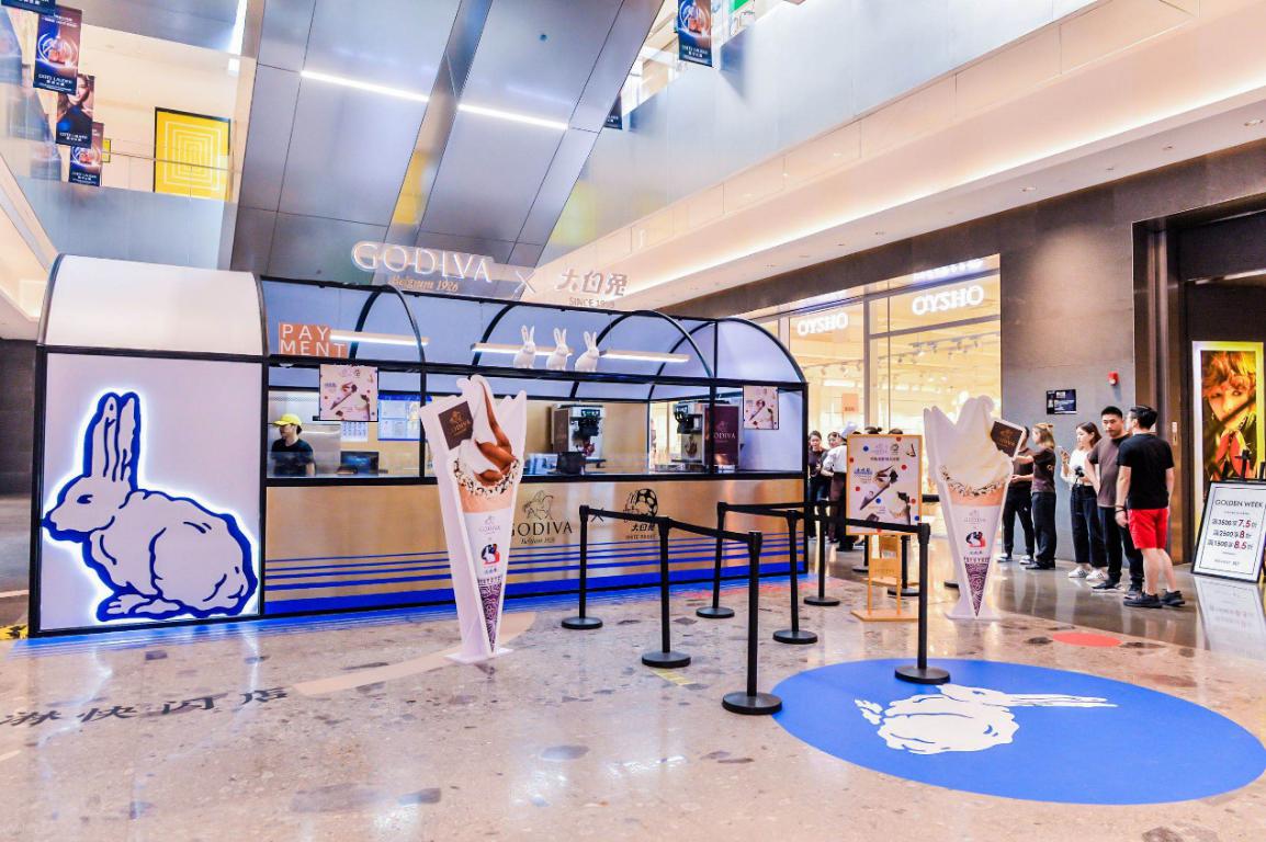 借著國潮品牌的崛起之風(fēng),2019年9月28日-10月27日, GODIVA&大白兔冰淇淋快閃店登陸深圳萬象天地。國潮斷貨王,在這里通通都可以買到,轉(zhuǎn)眼間,童年記憶中的大白兔已跨過60個(gè)年頭,但香甜奶味依舊未曾改變。
