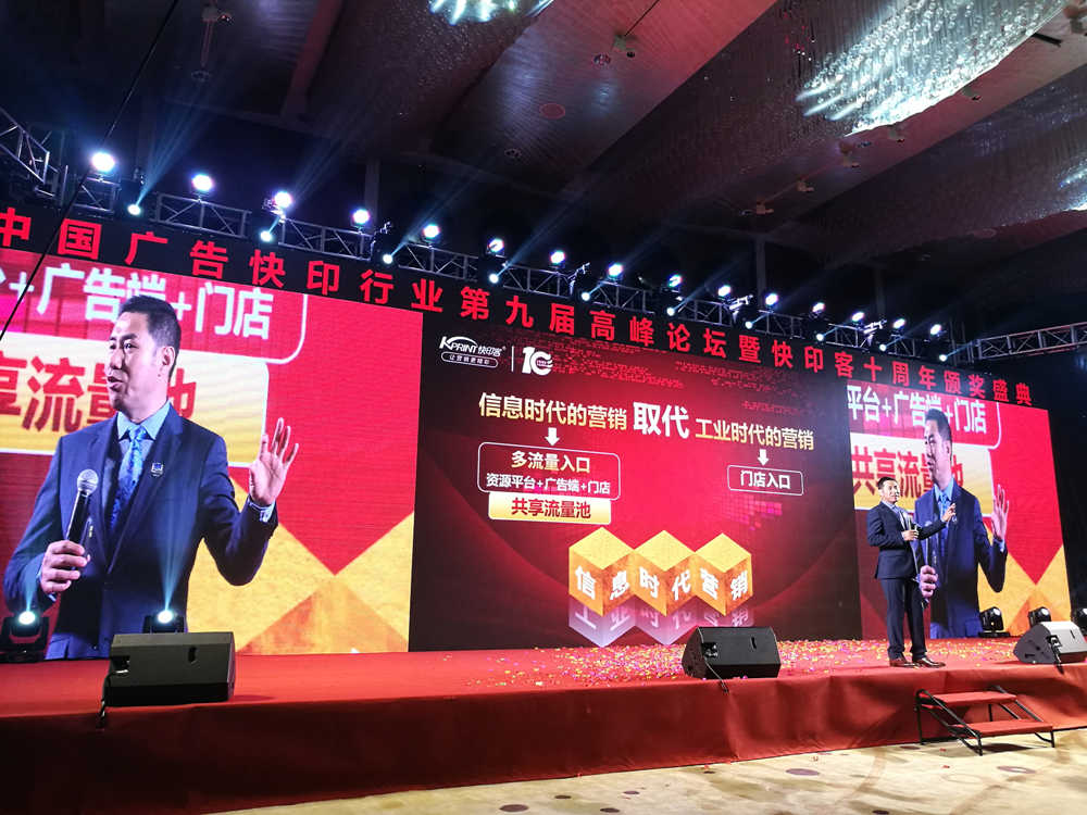 2019年,也是快印客成立的第十年,作為廣告快印行業(yè)新模式的創(chuàng)造者和領(lǐng)航者,本屆高峰會(huì)“十年見證,不忘初心”為主題,向行業(yè)展示了快印客十年取得的豐碩成果,共同開啟下一個(gè)黃金十年,并向過去一年里為行業(yè)做出突出貢獻(xiàn)的公司和個(gè)人頒發(fā)了榮譽(yù)獎(jiǎng)項(xiàng)。