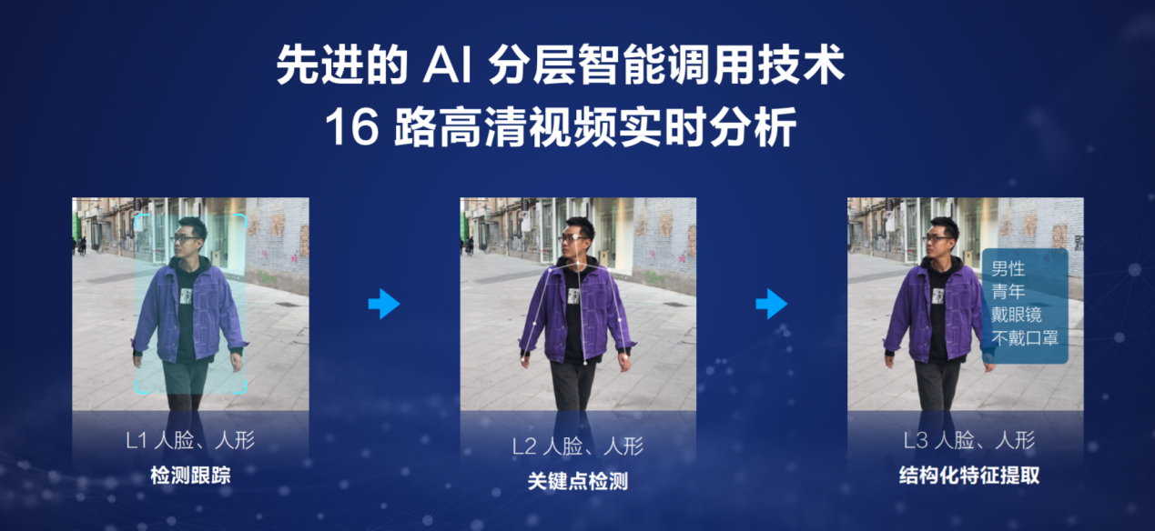針對(duì)邊緣計(jì)算的硬件架構(gòu)特點(diǎn),360家庭安全大腦·旗艦版設(shè)計(jì)了邊緣側(cè)AI調(diào)度引擎,分層智能調(diào)用,從人臉人形的基礎(chǔ)檢測(cè)跟蹤到關(guān)鍵點(diǎn)提取和圖像優(yōu)選再到結(jié)構(gòu)化特征提取比對(duì),層層遞進(jìn),最終實(shí)現(xiàn)了邊緣側(cè)單機(jī)16路1080P高清視頻實(shí)時(shí)解碼分析處理。