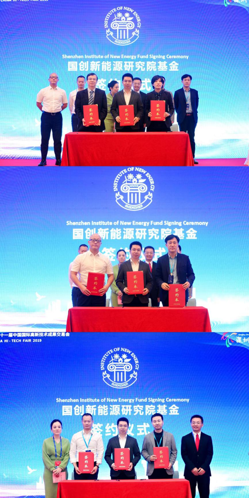 國創(chuàng)新能源研究院從創(chuàng)建以來,已經(jīng)孵化了8家企業(yè),圍繞這些孵化企業(yè),國創(chuàng)新能源研究院與賽馬資本、華創(chuàng)深大、漢唐資本、錦泓資本、東方守正(深圳)投資管理有限公司、江蘇銀行深圳分行,共6家聯(lián)合成立了“國創(chuàng)新能源研究院產(chǎn)業(yè)基金”,并在2019國際前沿科技高峰論壇正式簽約,由國創(chuàng)新能源研究院投資部部長林龍清代表簽署,國創(chuàng)新能源研究院茆勝院長、尹輝副院長上臺見證。