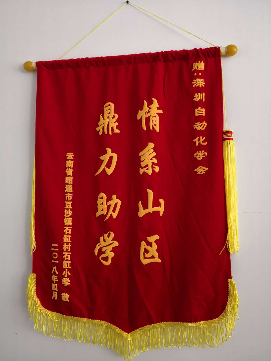 (學(xué)會(huì)收到被捐贈(zèng)小學(xué)的錦旗)