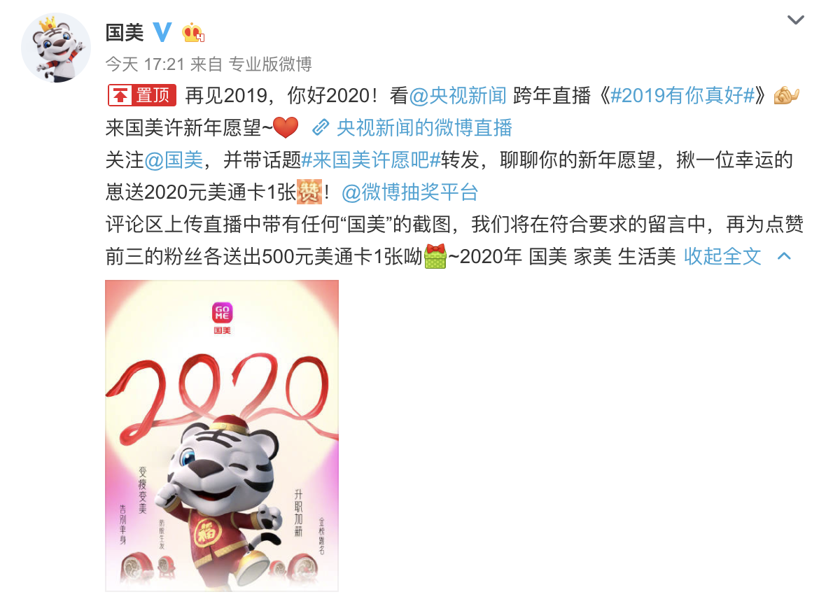 今年是國(guó)美首次聯(lián)合央視新聞跨年直播,為實(shí)現(xiàn)廣大國(guó)美用戶的心愿,回饋消費(fèi)者。國(guó)美還在微博啟動(dòng)多個(gè)有獎(jiǎng)轉(zhuǎn)發(fā)活動(dòng),獎(jiǎng)品為面值200元、500元、2020元的國(guó)美美通卡,如果沒有趕上央視新聞的跨年直播,還可在國(guó)美官方微博參與抽獎(jiǎng),新的一年有好的開始,沒準(zhǔn)下個(gè)錦鯉就是你!(常軍平)