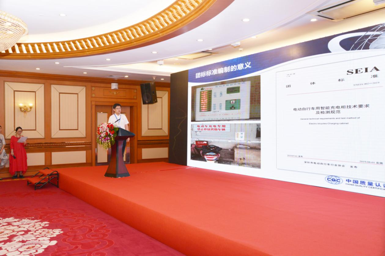 會議現(xiàn)場正式發(fā)布《電動自行車乘員頭盔技術(shù)要求及檢測規(guī)范》、《電動自行車用智能充電柜技術(shù)要求及檢測規(guī)范》和《電動自行車用鋰離子蓄電池技術(shù)要求及檢測規(guī)范》等三項(xiàng)團(tuán)體標(biāo)準(zhǔn),并舉行了“深圳市電動自行車行業(yè)安全標(biāo)準(zhǔn)先行示范啟動儀式”。中國質(zhì)量認(rèn)證中心總部郝鑫瑞、中國質(zhì)量認(rèn)證中心深圳分中心陳昱、深圳市計量質(zhì)量檢測研究院楊東平分別對三項(xiàng)標(biāo)準(zhǔn)作了展示和解讀。
