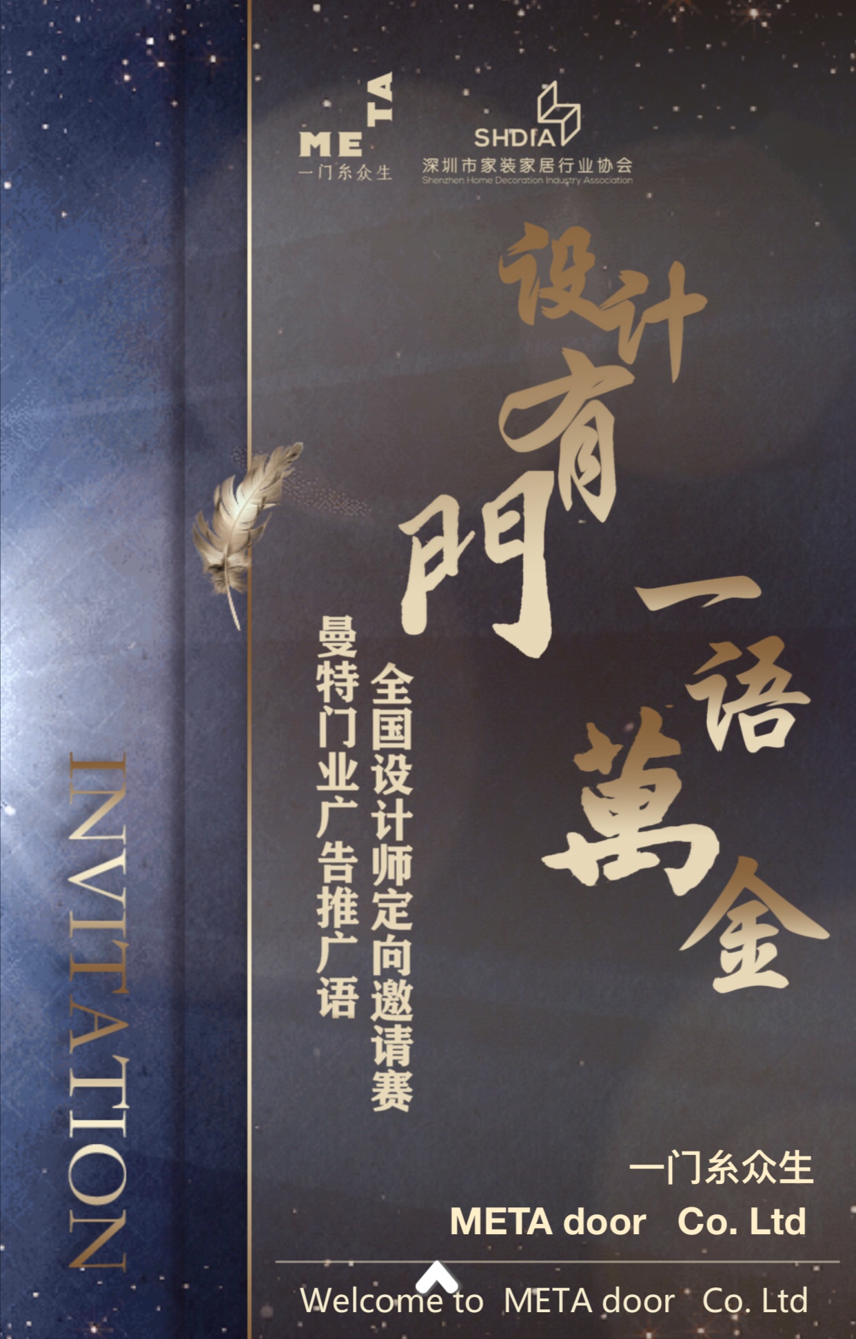“設計有門,一語萬金”深圳市家裝家居行業(yè)協會、深圳商報、FM106.2《快樂家居》工作室聯手曼特門業(yè)舉辦的曼特門業(yè)廣告推廣語全國設計師定向邀請賽,在2020年1月1日正式啟動啦。