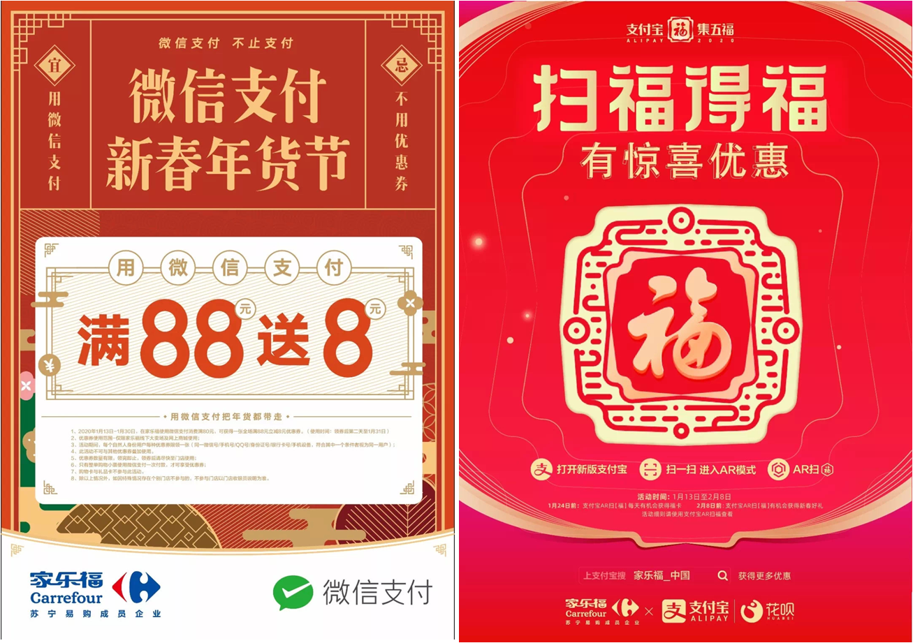 除此之外,各大支付平臺(tái)優(yōu)惠券亦開(kāi)始發(fā)放,助力您的年貨采買(mǎi)。前方高能預(yù)警!1月13日至2月8日,顧客使用支付寶掃上圖“?!弊忠约皡⑴c集五?;顒?dòng),即有機(jī)會(huì)獲得家樂(lè)福全場(chǎng)滿(mǎn)200減10優(yōu)惠券。1月13日至1月30日,在家樂(lè)福使用微信支付消費(fèi)滿(mǎn)80元,可獲得一張全場(chǎng)滿(mǎn)88元立減8元優(yōu)惠券,