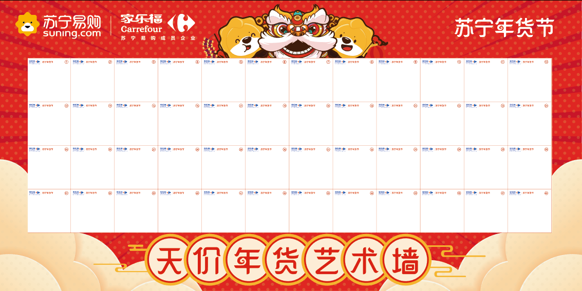 家樂福華南區(qū)相關(guān)負(fù)責(zé)人表示,“天價年貨藝術(shù)墻”結(jié)合當(dāng)前最受關(guān)注的天價藝術(shù)這個熱門話題,融入春節(jié)傳統(tǒng)中國人講究的福氣、運(yùn)氣等元素,讓參與者通過深度互動,享受寓購于樂的購物體驗(yàn)。