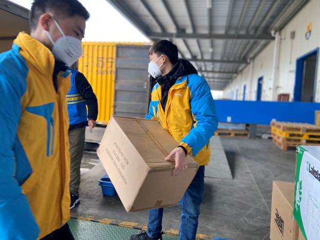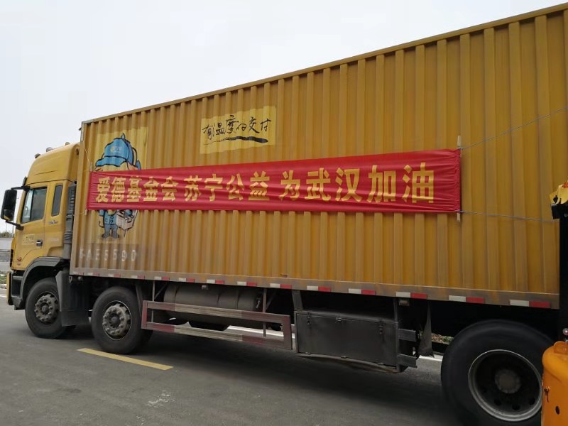 蘇寧華中物流園,蘇寧物流將防疫物資裝車(chē)送到醫(yī)務(wù)工作者、前線記者、快遞員手中