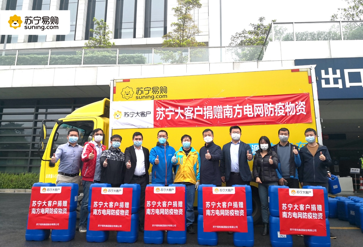 2月12日上午,為實(shí)現(xiàn)“共同戰(zhàn)疫”目標(biāo),助力南方電網(wǎng)保障民生,蘇寧大客戶聯(lián)合廣東華翼在廣州蘇寧物流園區(qū)內(nèi)為南方電網(wǎng)總部捐贈(zèng)100桶次氯酸鈉消毒液。在疫情面前,每個(gè)一線人員都在用自身行動(dòng)堅(jiān)定抗疫,蘇寧與供應(yīng)商伙伴也在用自身的力量為他們提供力所能及的保障。南方電網(wǎng)公司后勤管理中心總經(jīng)理文茂華、后勤管理中心安保部經(jīng)理韓忠輝、后勤管理中心綜合部負(fù)責(zé)人陳小練、主管陳世強(qiáng)一行代表南網(wǎng)接受捐贈(zèng)。