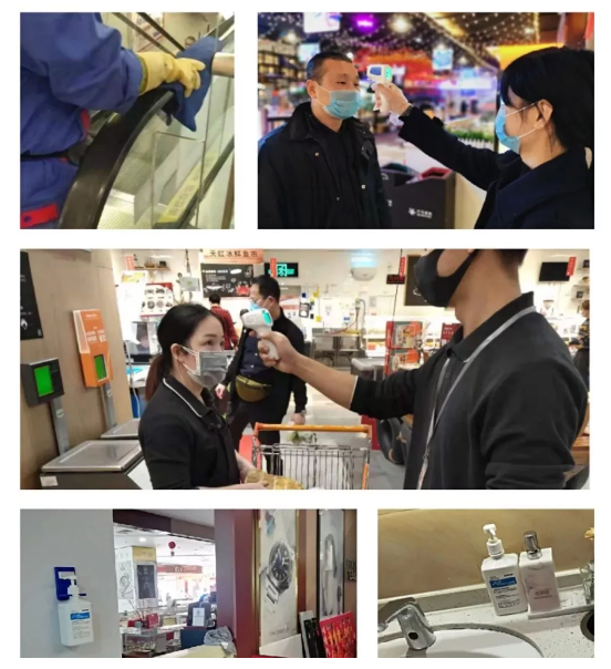 由于網(wǎng)上“配送到家”服務訂單量的劇增,在保障網(wǎng)上訂單及員工的安全性方面,蘇寧家樂福也做了十足防范措施。首先,蘇寧家樂福要求所有工作人員一律佩戴口罩,并通過體溫檢測才能上崗。其次,門店每天至少會在3個時間段使用84消毒液對賣場所有公共區(qū)域以及辦公區(qū)、員工餐廳等區(qū)域進行清潔衛(wèi)生消毒,并對手提籃、購物車、電梯扶手、垂直梯按鈕每隔2小時進行清潔消毒;再次,賣場的熟食產(chǎn)品加蓋加罩售賣,安排專人看管,禁止顧客直接用手觸摸,停止提供“試吃”及“餐飲堂食”服務。所有快遞、外賣小哥必須佩戴口燥,并通過體溫檢測,在門店入口用消毒凝膠清潔后方可提貨。