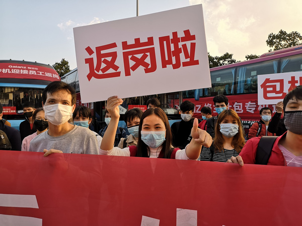 見圳客戶端·深圳新聞網(wǎng)2020年2月26日訊 2月25日下午,格蘭仕第二班“復(fù)工專機(jī)”在廣州白云國(guó)際機(jī)場(chǎng)平穩(wěn)降落,一百三十多名來自廣西各地的格蘭仕員工下了飛機(jī)第一件事,就是換上工作服,然后再搭乘企業(yè)安排的免費(fèi)專車,回到了格蘭仕順德總部。據(jù)了解,2月21日,首趟“格蘭仕復(fù)工專機(jī)”已經(jīng)接回了一百三十多名生產(chǎn)技術(shù)人員。