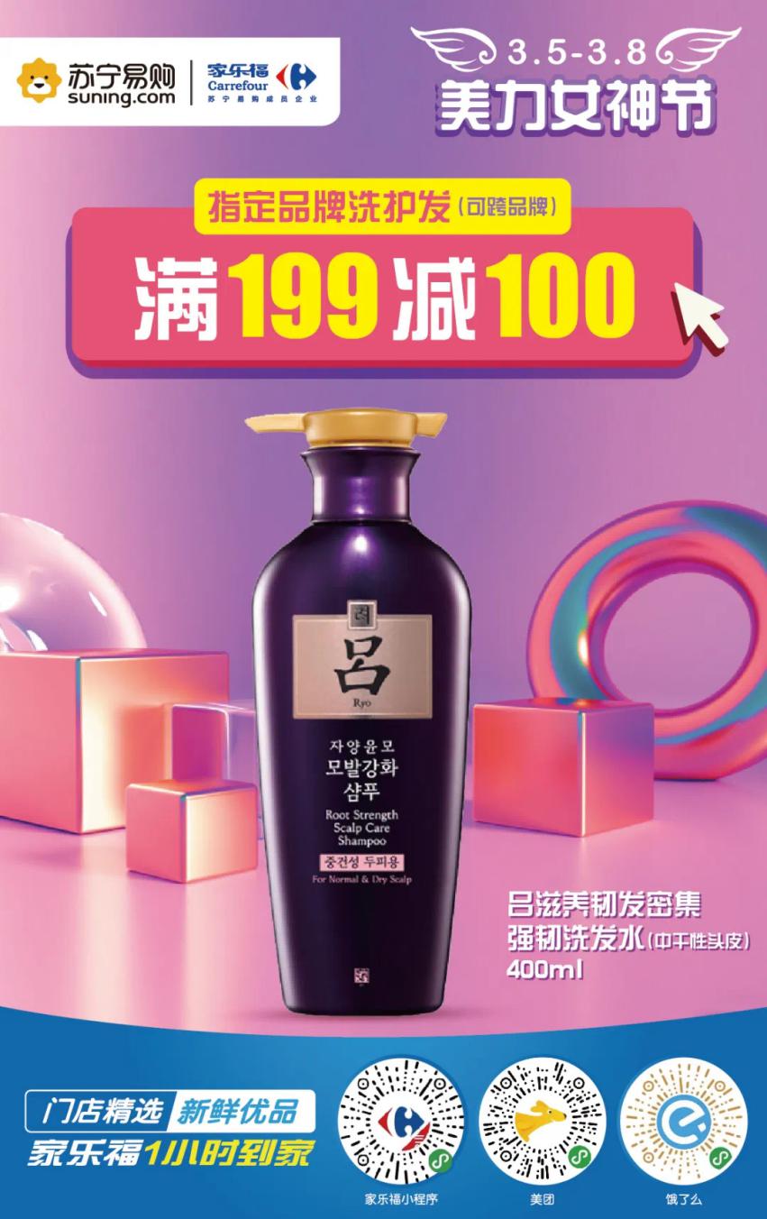 疫情期間,除了護(hù)膚,仙女們的一頭秀發(fā)也萬萬不能忽視!小本本記好了,家樂福指定品牌洗護(hù)發(fā)滿199立減100元。
