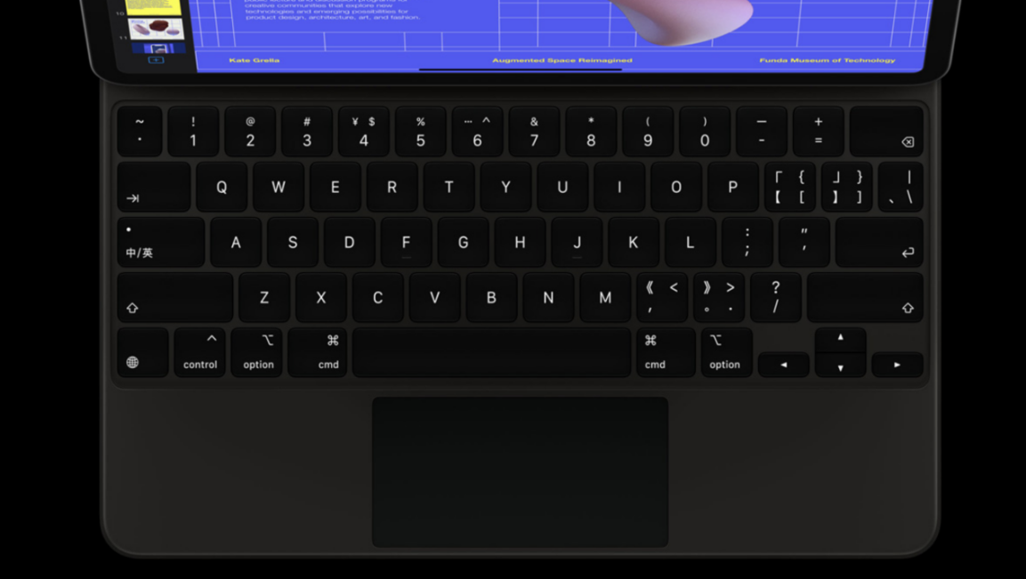 在iPadOS13中,蘋果加入了針對鼠標的支持,另外蘋果還專門為這款新iPad Pro設計專屬的Magic Keyboard鍵盤,不僅有全尺寸鍵盤,采用獨立的硬質鍵帽及一毫米鍵程剪刀式結構,帶來靈敏、舒適又安靜的輸入體驗。還設有點按效果全面一致的觸控板,搭配iPad OS也能得心應手處理辦公內容。