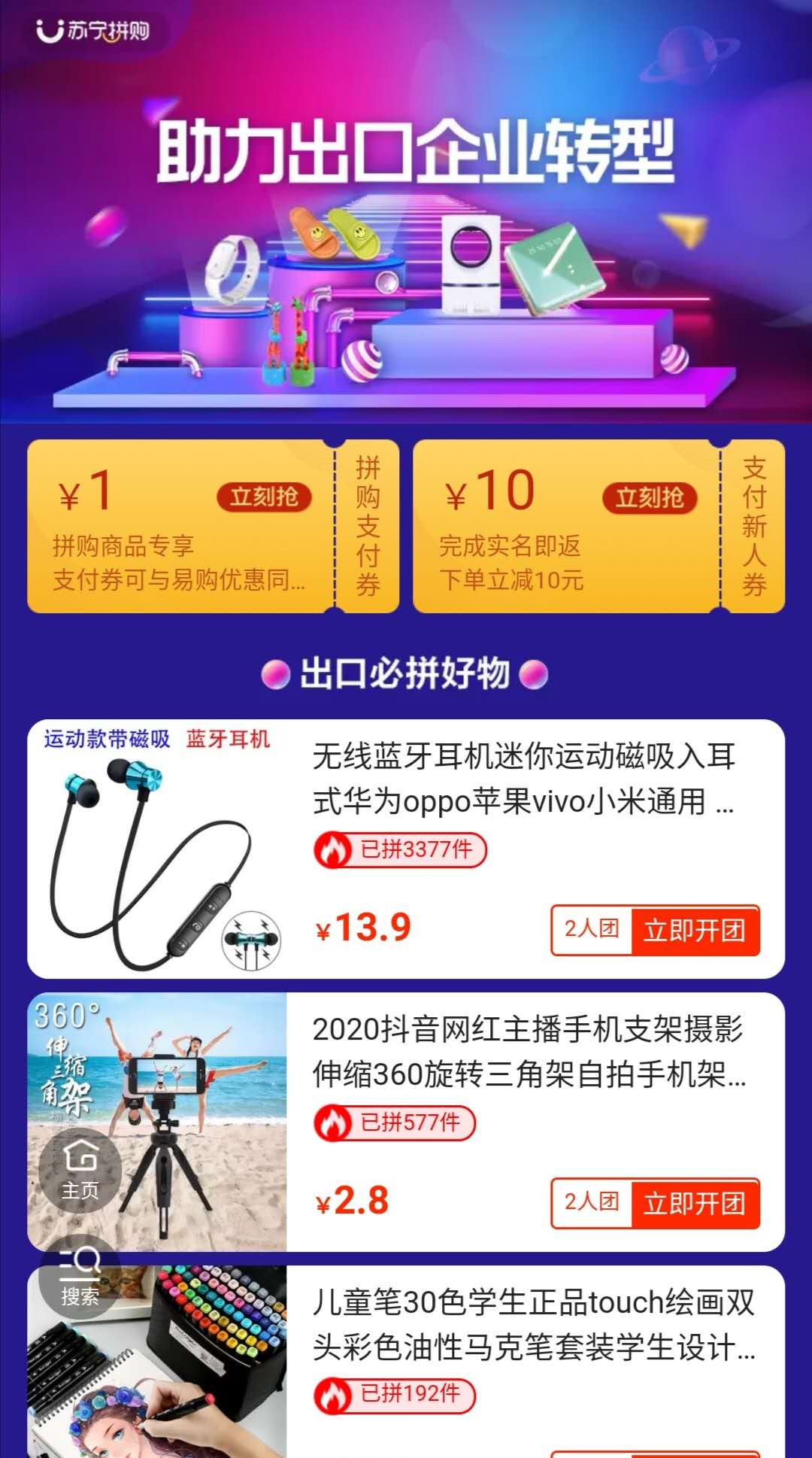 見圳客戶端·深圳新聞網(wǎng)2020年4月27日訊 4月,深圳地區(qū)百余家從事出口外貿(mào)的企業(yè)加入了蘇寧拼購。蘇寧拼購于4月27日專門為他們上線了“助力出口企業(yè)轉(zhuǎn)型”專區(qū)。