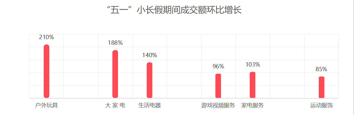 “五一”小長假尤其對河南、河北、安徽等中部省份的線上消費拉動作用更強。由于一線城市的線上消費趨于日常化,人們多外出活動,用親近大自然、戶外活動的方式度過假日。同時,一部分在大城市里工作的人員也在假日返回老家,帶動了中部省份的線上消費。