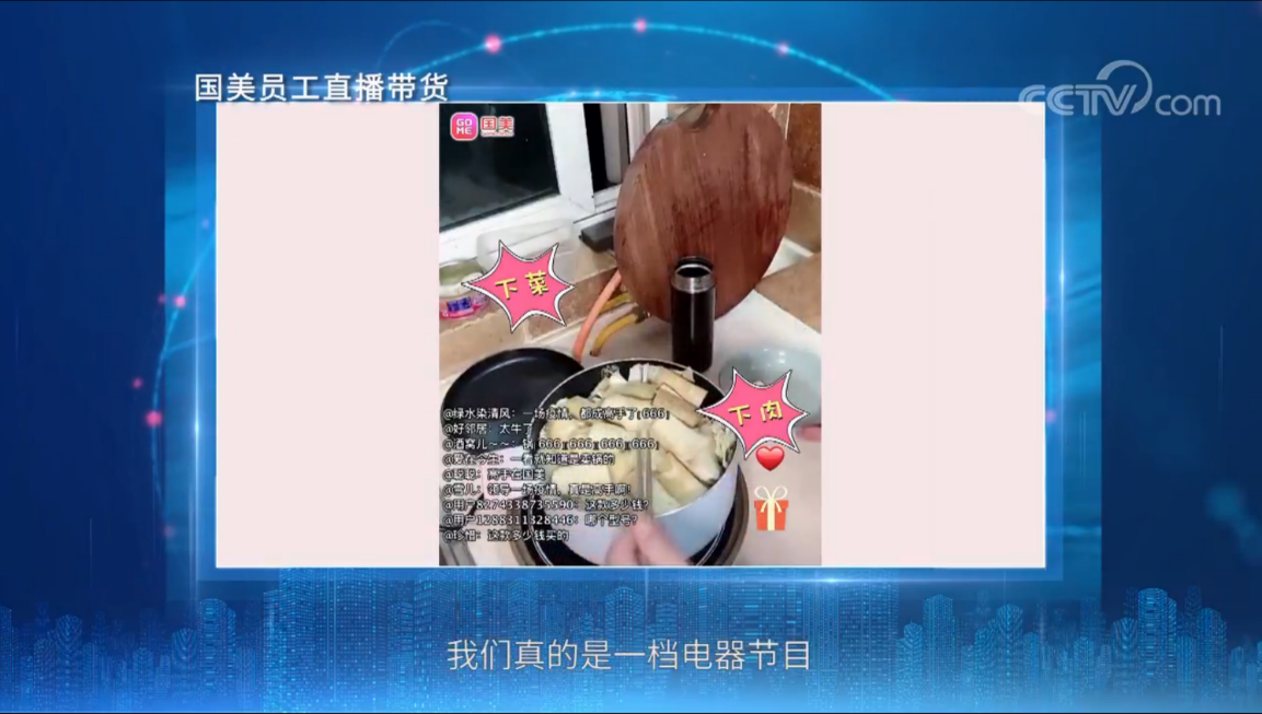 擴內(nèi)需也要借助多種手段提升消費欲望。在春節(jié)期間的直播帶貨中,國美河南分公司總經(jīng)理孟磊為剛剛轉(zhuǎn)型直播的國美添了一把火——孟磊將直播間搬進自家廚房,通過“深夜食堂”的“吃播”方式,為用戶推薦生活小家電。在國美工作二十余年的孟磊將家電功能通過美食制作的形式,展現(xiàn)的淋漓盡致。在讓用戶“流口水”的同時,銷售業(yè)績屢創(chuàng)新高,也為越來越多的用戶提升了生活幸福感。
