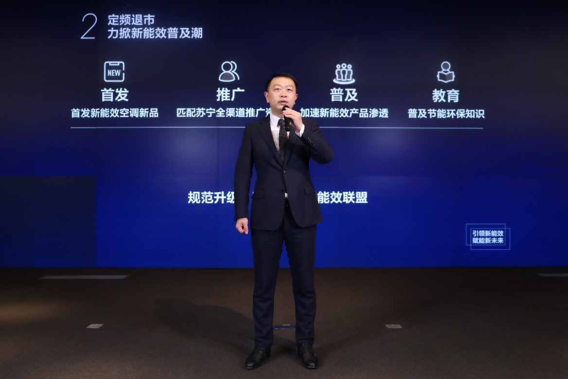 國(guó)家標(biāo)準(zhǔn)推動(dòng)新能效空調(diào)進(jìn)入普及快車道的同時(shí),蘇寧作為家電第一渠道,也在積極通過(guò)綠色消費(fèi)讓利活動(dòng),加大新能效空調(diào)產(chǎn)品的推廣。蘇寧家電集團(tuán)副總裁徐仲介紹說(shuō),去年8月,蘇寧就啟動(dòng)了“定頻退市”項(xiàng)目。今年將在此基礎(chǔ)上多重加碼,一方面聯(lián)合各家空調(diào)企業(yè),成立“新一級(jí)能效聯(lián)盟”,加速新能效空調(diào)的研發(fā)與推廣;另一方面持續(xù)開(kāi)展“空調(diào)節(jié)能風(fēng)暴活動(dòng)”,涵蓋包括老能效清倉(cāng)、新能效補(bǔ)貼、以舊換新和24期免息在內(nèi)的四重補(bǔ)貼,從而加速新舊能效產(chǎn)品的切換,降低新能效空調(diào)的消費(fèi)門(mén)檻。