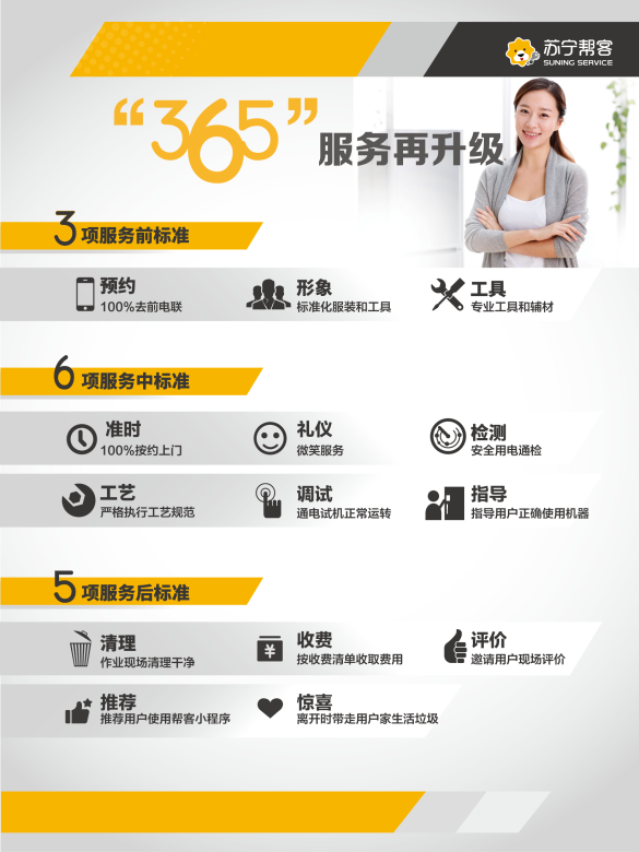 “三分產(chǎn)品七分安裝”,超60萬(wàn)套空調(diào),如何保障快速及時(shí)的安裝?蘇寧幫客負(fù)責(zé)人告訴記者,蘇寧全國(guó)區(qū)域空調(diào)售后服務(wù)堅(jiān)持貨到24小時(shí)上門安裝的服務(wù)時(shí)效,并按照用戶預(yù)約時(shí)間準(zhǔn)時(shí)上門。不僅如此,全國(guó)蘇寧幫客空調(diào)安裝服務(wù)統(tǒng)一堅(jiān)持365服務(wù)標(biāo)準(zhǔn),覆蓋作業(yè)前、中、后期的工服、工牌、鞋套、墊機(jī)布、收費(fèi)標(biāo)準(zhǔn)、衛(wèi)生維護(hù)等多項(xiàng)標(biāo)準(zhǔn),并歡迎用戶監(jiān)督。