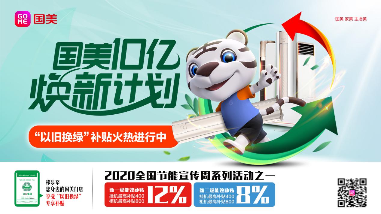 近年來,國家各部委也都在推動綠色消費、綠色生活、綠色產品生產與普及。國家發(fā)展改革委等七部委在去年聯(lián)合印發(fā)的《綠色高效制冷行動方案》中提出,要通過實施“節(jié)能補貼”“以舊換綠”等措施,促進綠色高效制冷消費。為積極響應國家綠色行動號召,加速新能效空調推廣、推動綠色消費,助力綠色生活走進千家萬戶,7月6日起,國美將在全國范圍開展為期2個月的主題為“國美10億煥新計劃”的補貼活動,助力空調“以舊換綠”。