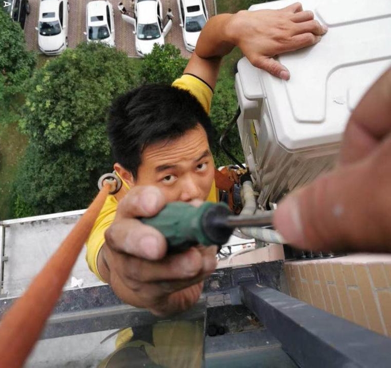 只靠一根繩,30米高空裝空調(diào)