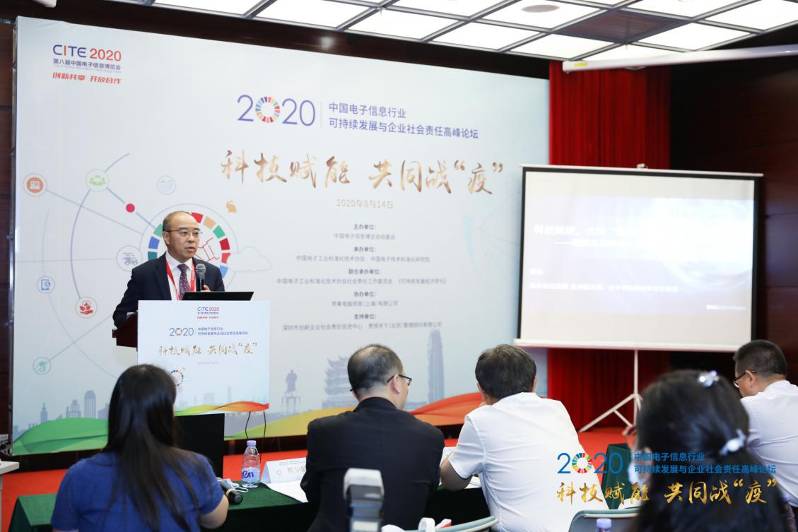 見圳客戶端·深圳新聞網(wǎng)2020年8月18日訊 近日,中國電子信息行業(yè)2020可持續(xù)發(fā)展與企業(yè)社會(huì)責(zé)任高峰論壇在深圳會(huì)展中心成功舉行。本次論壇由中國電子信息博覽會(huì)組委會(huì)主辦,中國電子工業(yè)標(biāo)準(zhǔn)化技術(shù)協(xié)會(huì)、中國電子技術(shù)標(biāo)準(zhǔn)化研究院承辦,中國電子工業(yè)標(biāo)準(zhǔn)化技術(shù)協(xié)會(huì)社會(huì)責(zé)任工作委員會(huì)和《可持續(xù)發(fā)展經(jīng)濟(jì)導(dǎo)刊》雜志社聯(lián)合承辦,行業(yè)內(nèi)領(lǐng)先企業(yè)積極參與,以“科技賦能共同戰(zhàn)‘疫’”為主題,共同交流分享電子信息行業(yè)企業(yè)抗擊新冠肺炎疫情的典型經(jīng)驗(yàn)和做法。