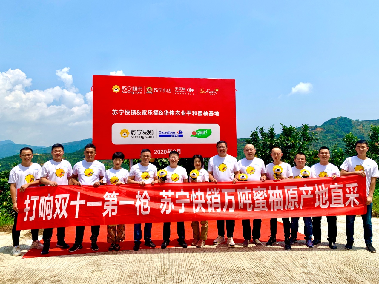 8月26日,蘇寧家樂(lè)福中國(guó)區(qū)生鮮采購(gòu)總監(jiān)孫樂(lè)超、水果組總監(jiān)孟碩、華南區(qū)采購(gòu)總監(jiān)周益明,以及蘇寧易購(gòu)水果組采銷總監(jiān)戴躍等一行來(lái)到位于福建省平和縣的華偉農(nóng)業(yè)蜜柚基地,與平和縣委書記郭德志等地方領(lǐng)導(dǎo)共同宣布蘇寧家樂(lè)福&華偉農(nóng)業(yè)蜜柚直采基地的正式啟動(dòng)。