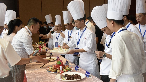 嘉美軒飲食集團(tuán)總裁張品關(guān)代表致詞提到:集團(tuán)致力于弘揚(yáng)潮汕飲食文化,促進(jìn)潮州菜傳承與創(chuàng)新,而飲食文化傳承離不開烹飪?nèi)瞬诺膲汛螅煜录蚊儡帍N藝學(xué)院,旨在挖掘培養(yǎng)更多烹飪?nèi)瞬?,承辦本次競(jìng)賽活動(dòng)就是響應(yīng)廣東省“粵菜師傅”工程實(shí)施方案,充分利用深圳區(qū)位優(yōu)勢(shì),選拔優(yōu)秀烹飪?nèi)瞬?,把“深派風(fēng)味菜”的招牌擦得更亮、叫得更響。