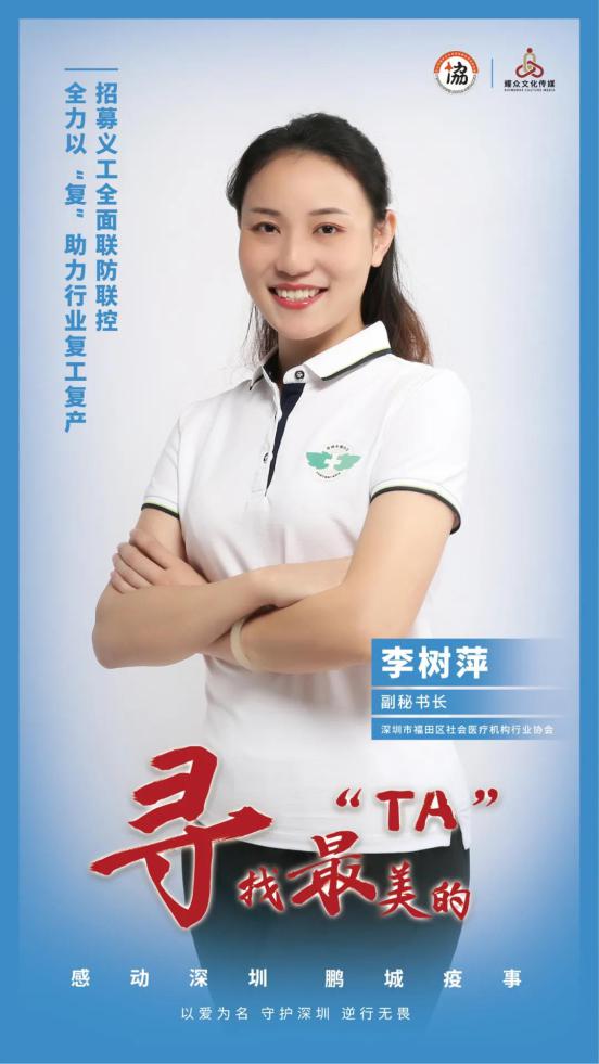 深圳市福田區(qū)社會醫(yī)療機(jī)構(gòu)行業(yè)協(xié)會副秘書長李樹萍,在區(qū)衛(wèi)生局的幫助下,早在1月16日即率先組織了福田轄區(qū)約250家社會辦醫(yī)機(jī)構(gòu)的防疫應(yīng)急培訓(xùn),為后續(xù)的科學(xué)防控打下了扎實基礎(chǔ)。疫情關(guān)鍵時期,社區(qū)防控一線醫(yī)務(wù)人員力量嚴(yán)重不足,李樹萍帶領(lǐng)團(tuán)隊聯(lián)合黨委和行業(yè)協(xié)會發(fā)起志愿者招募。歷時3個工作日共招募到196名志愿者,培訓(xùn)后符合要求上崗聯(lián)防聯(lián)控的123名志愿者,總服務(wù)時長達(dá)4555小時。