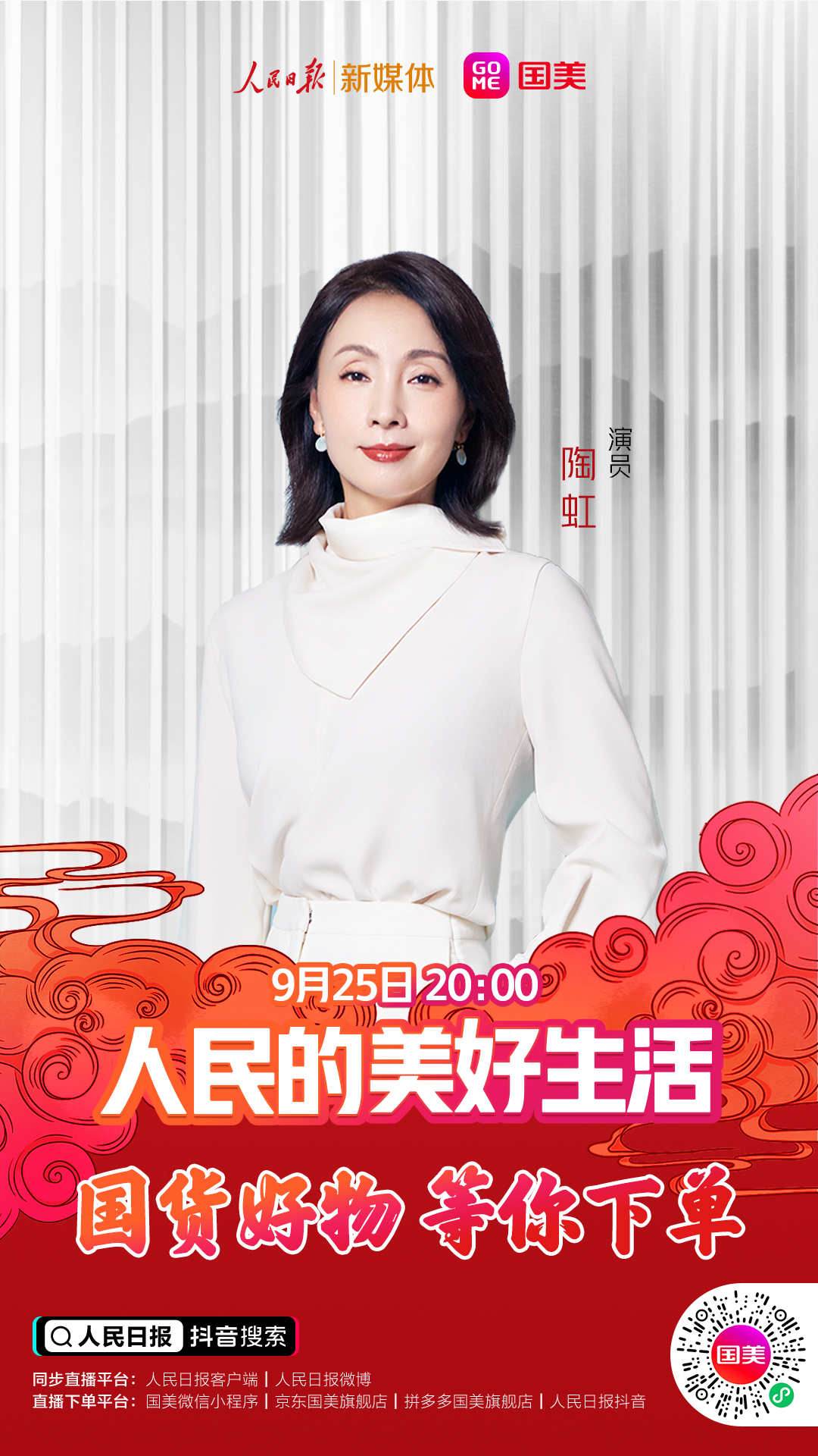 9月25日(周五)晚20點,鎖定人民日報抖音號、國美商城抖音號、國美微信小程序、國美京東旗艦店、國美拼多多旗艦店,關(guān)注直播,國貨好物,等你下單!人民的美好生活,不能少了你?。ǔ\娖剑?/p>