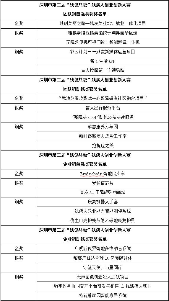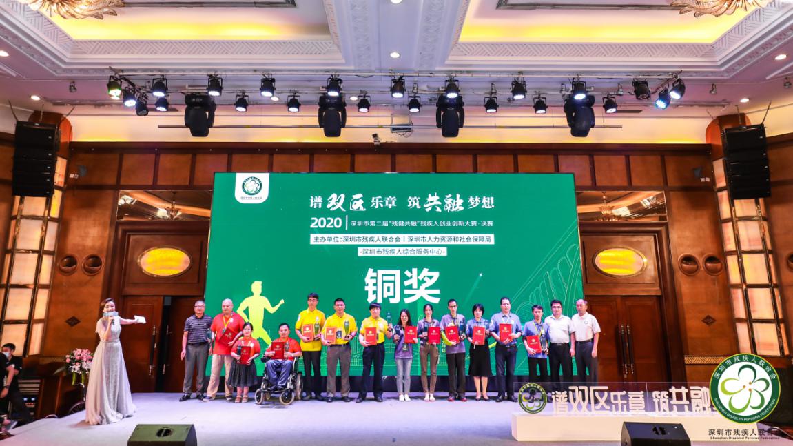 見(jiàn)圳客戶端·深圳新聞網(wǎng)2020年9月30日訊(記者 張俊達(dá))昨天,由深圳市殘疾人聯(lián)合會(huì)與深圳市人力資源和社會(huì)保障局共同主辦,深圳市殘疾人綜合服務(wù)中心承辦,各區(qū)(新區(qū))殘疾人聯(lián)合會(huì)、各區(qū)(新區(qū))殘疾人就業(yè)服務(wù)機(jī)構(gòu)聯(lián)合協(xié)辦的深圳市第二屆“殘健共融”殘疾人創(chuàng)業(yè)創(chuàng)新大賽決賽暨頒獎(jiǎng)典禮圓滿落幕。大賽共評(píng)選出4個(gè)金獎(jiǎng)、8個(gè)銀獎(jiǎng)、12個(gè)銅獎(jiǎng)及若干個(gè)優(yōu)勝獎(jiǎng)。現(xiàn)場(chǎng)有來(lái)自殘聯(lián)單位、企業(yè)、高校、社會(huì)組織等代表100余人參加本次活動(dòng)。