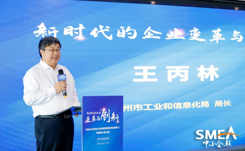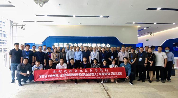 見圳客戶端·深圳新聞網(wǎng)2020年11月9日訊 近日,由河北省工業(yè)和信息化廳主辦,深圳市中小企業(yè)家聯(lián)誼會(huì)、深圳市中小企業(yè)產(chǎn)業(yè)創(chuàng)新協(xié)會(huì)、滄州市工業(yè)和信息化局承辦的“新時(shí)代的企業(yè)變革與創(chuàng)新——河北省中小企業(yè)高層經(jīng)營(yíng)管理者(職業(yè)經(jīng)理人)專題培訓(xùn)(滄州班)”在深圳隆重開班。來自滄州市產(chǎn)業(yè)集群龍頭企業(yè)、優(yōu)秀民營(yíng)企業(yè)、“專精特新”企業(yè)、培育擬上市企業(yè)的董事長(zhǎng)、總經(jīng)理等共計(jì)56人參加培訓(xùn)。