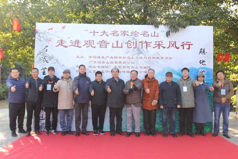見圳客戶端·深圳新聞網(wǎng)2020年12月28日訊 為弘揚(yáng)名山文化,展現(xiàn)名山風(fēng)采,近日由中國林業(yè)產(chǎn)業(yè)聯(lián)合會(huì)名山文化與自然教育分會(huì)和廣東觀音山國家森林公園共同主辦的“名家繪名山”系列活動(dòng)在東莞樟木頭觀音山景區(qū)啟動(dòng)。作為啟動(dòng)儀式首站,主辦方邀請(qǐng)了李耀林、邵璞、孟慶剛、陳玉林、任賢義、黃棟斌、陸遷波、張延?xùn)|、苗霖、李建鋒10位國內(nèi)畫壇著名美術(shù)家,走進(jìn)東莞觀音山采風(fēng)、寫生、創(chuàng)作?;顒?dòng)期間,10位畫家共同創(chuàng)作了“名山十大雄天下”巨幅山水畫,并創(chuàng)作了系列采風(fēng)畫作,成效頗豐。