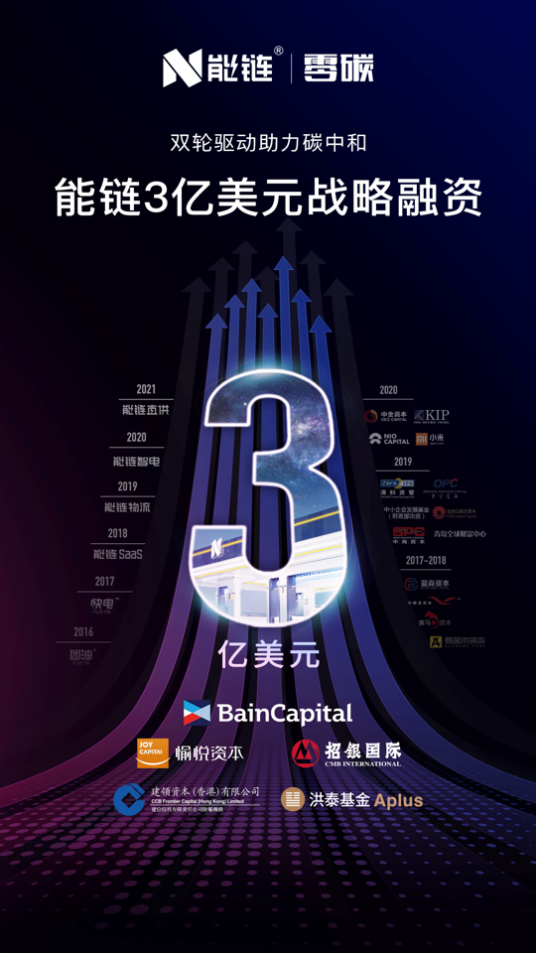 中國網2020年3月23日訊 昨日,能鏈宣布完成新一輪2億美元戰(zhàn)略融資,貝恩資本(Bain Capital)領投,老股東愉悅資本繼續(xù)跟投,華興資本擔任獨家財務顧問。綜合今年年初招銀國際領投的1億美元融資,能鏈本次戰(zhàn)略輪系列融資累計金額達3億美元。能鏈股東還包括中金資本、洪泰基金旗下國調洪泰、中小企業(yè)發(fā)展基金、小米集團、蔚來資本、KIP中國等。