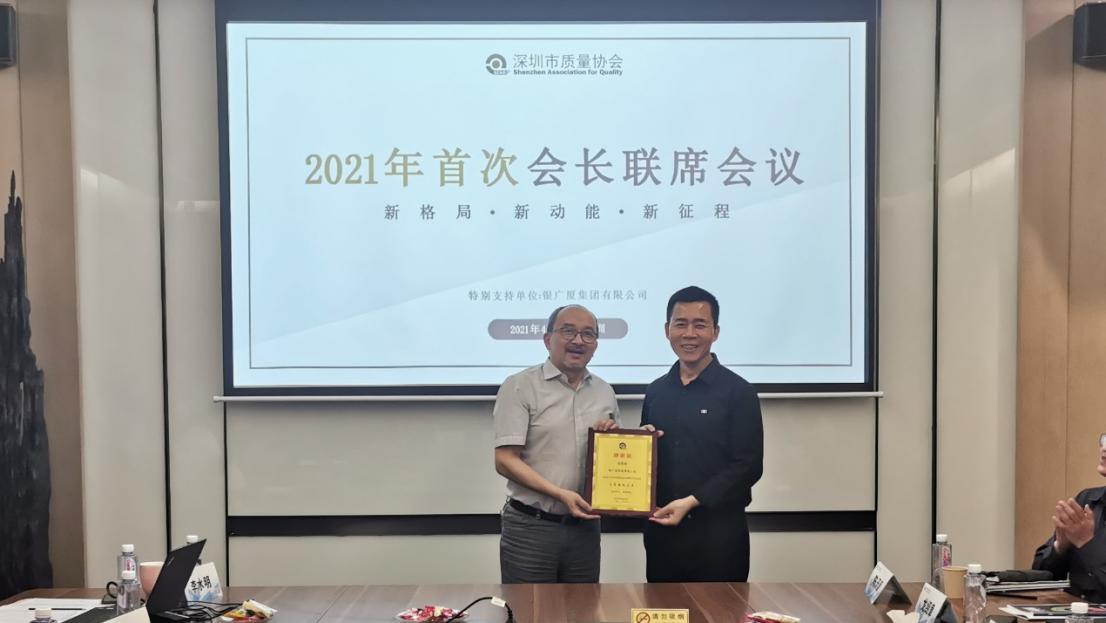 見圳客戶端·深圳新聞網(wǎng)2021年4月22日訊 近日,深圳市質量協(xié)會2021年首次會長聯(lián)席會議在市質協(xié)副會長單位銀廣廈集團有限公司成功舉辦。深圳市人民政府原副市長陳彪,原廣東省政府參事、原深圳出入境檢驗檢疫局局長、市決咨委——市先行示范區(qū)專家劉勝利,深圳市質量協(xié)會會長、深圳航盛電子有限公司董事長楊洪以及各在深副會長出席了本次會議。
