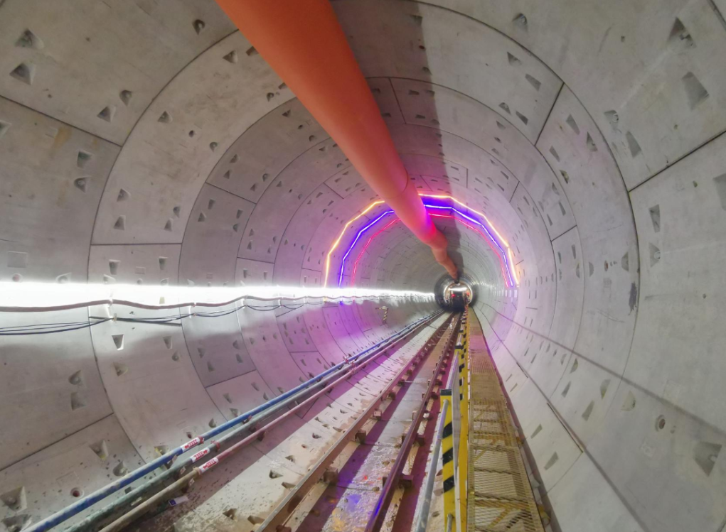 區(qū)間于2021年2月4日正式始發(fā),跨年施工,歷時77天,兩次近距離下穿地下空間深基坑,最小凈距1.8m。區(qū)間范圍存在長度約40米范圍的上軟下硬地層,天然抗壓強度大于100Mpa,針對現(xiàn)場困難,項目部超前謀劃,科學組織,提前進行深孔爆破預處理,降低了施工風險,保證了盾構機順利穿越上軟下硬地段并成功抵達接收端頭。