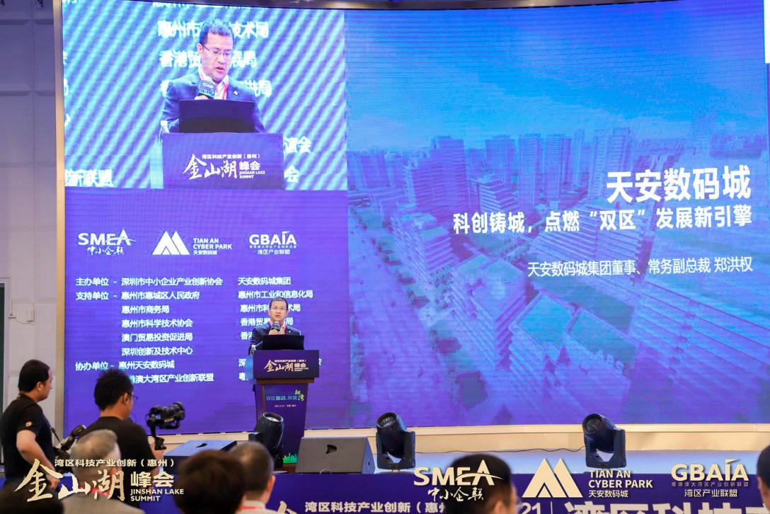 “‘雙區(qū)’建設(shè)是國(guó)家領(lǐng)導(dǎo)人和黨中央部署的重大國(guó)家戰(zhàn)略,作為粵港澳大灣區(qū)重要節(jié)點(diǎn)和深圳都市圈重要成員,全力支持、積極融入既是惠州鮮明的政治態(tài)度,也是惠州發(fā)展的必然抉擇。相信在惠州市及各級(jí)政府部門(mén)支持下,深圳市中小企業(yè)產(chǎn)業(yè)創(chuàng)新協(xié)會(huì)、天安數(shù)碼城集團(tuán)強(qiáng)強(qiáng)攜手,與各方合作伙伴共同努力,通過(guò)每年一屆的“灣區(qū)產(chǎn)業(yè)創(chuàng)新(惠州)金山湖峰會(huì)”深入落實(shí)創(chuàng)新驅(qū)動(dòng)發(fā)展戰(zhàn)略,匯聚粵港澳大灣區(qū)產(chǎn)業(yè)創(chuàng)新資源,深化粵港澳創(chuàng)新合作,助力惠州與灣區(qū)城市間的產(chǎn)業(yè)創(chuàng)新與協(xié)同發(fā)展。