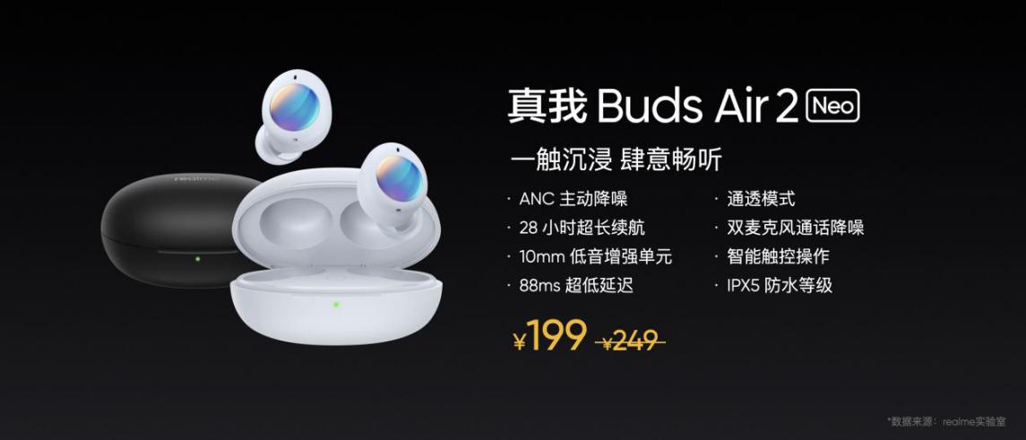 發(fā)布會,realme還帶來了兩款A(yù)loT新品。真我 Buds Air2 Neo配備25dBANC主動降噪,擁有優(yōu)秀的續(xù)航表現(xiàn)和連接性能,充電10分鐘,聽歌3小時,可隨時隨地享受安靜、高保真的音質(zhì)。外觀設(shè)計上采用鵝卵石造型,優(yōu)美曲線更貼合人體工學(xué)原理,長時間佩戴也非常舒適。此外,realme還推出了“最有生活”的真我小夜燈,以甜甜圈為設(shè)計靈感,為生活帶來更舒適的暖光享受。