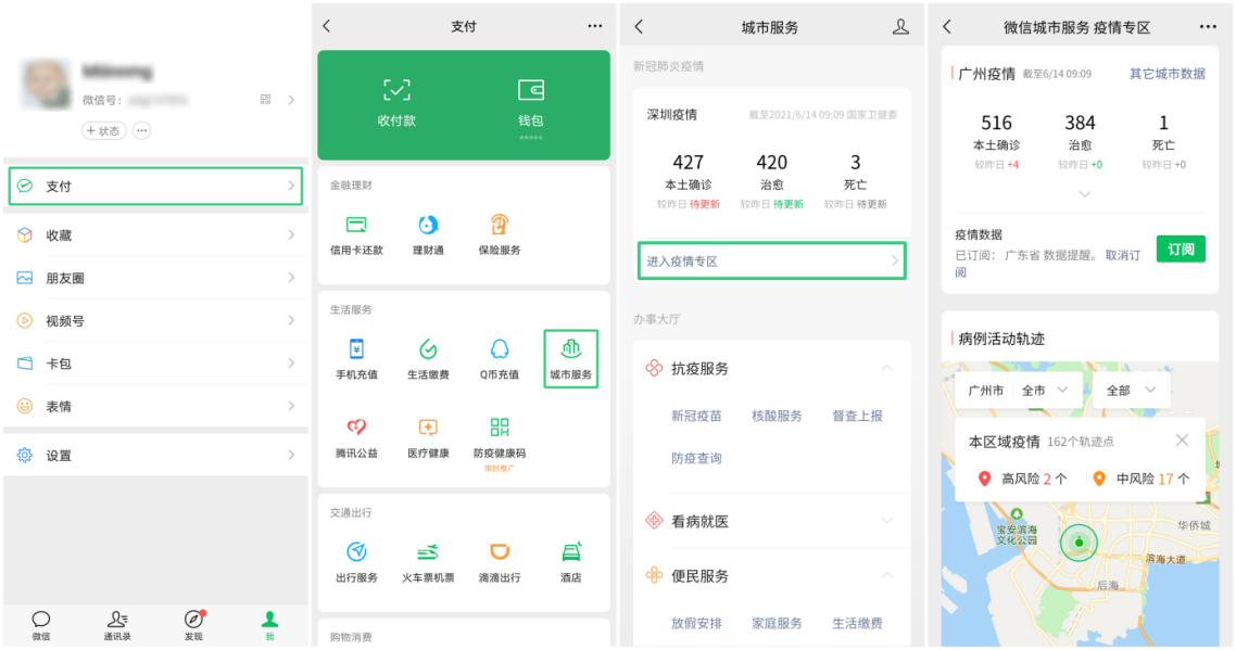 讀特客戶端·深圳新聞網2021年6月16日訊 (記者 田志強)端午期間,為減少疫情傳播風險,廣東市民紛紛響應號召實行就地過節(jié),落實非必要不出省的相關要求。為進一步助力廣東及全國人民抗疫,為市民提供準確疫情資訊及抗疫服務,近日,微信更新城市服務疫情專區(qū),支持查看疫情數(shù)據(jù)、病例活動軌跡、疫情資訊以及接入抗疫服務。全國用戶打開“我-支付-城市服務-疫情專區(qū)”,即可快速觸達各類疫情相關服務。