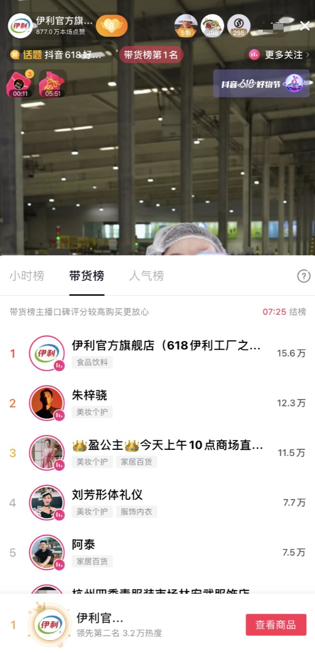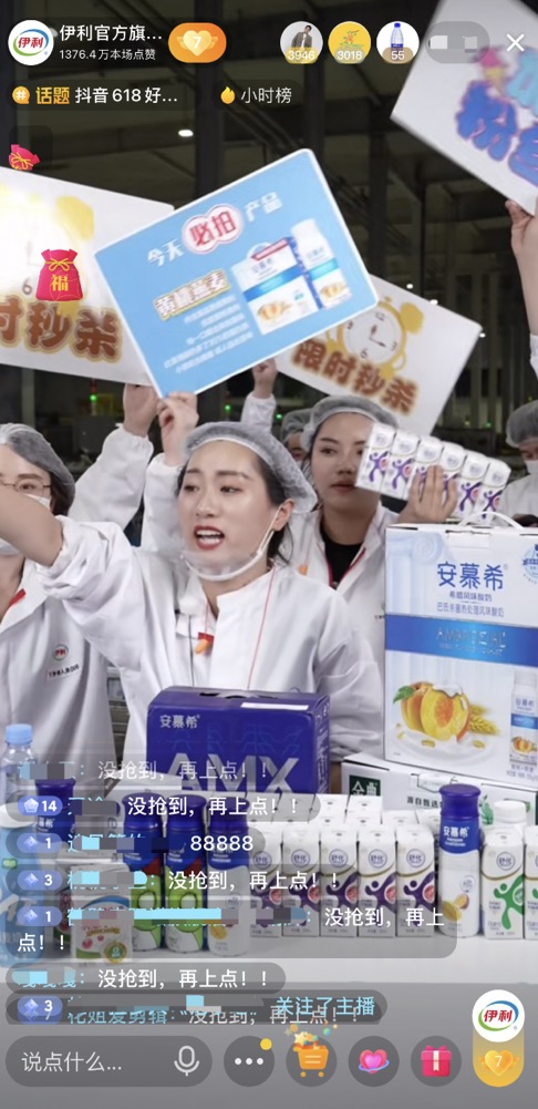 同時(shí),伊利洞察到消費(fèi)者對(duì)產(chǎn)品品質(zhì)的關(guān)注,和直播間消費(fèi)者一起深入伊利工廠,直接在好奶的源頭開(kāi)啟溯源直播,極大地滿足了消費(fèi)者所見(jiàn)即所得的需求,同時(shí)也提升了直播的可看性,充分契合了興趣電商的內(nèi)核。這種新穎的直播模式最終創(chuàng)造了連續(xù)霸屏帶貨小時(shí)榜5小時(shí)的自播紀(jì)錄,在618當(dāng)天實(shí)現(xiàn)了抖音行業(yè)單日自播榜第一,單日銷(xiāo)售額破千萬(wàn)的傲人成績(jī)。