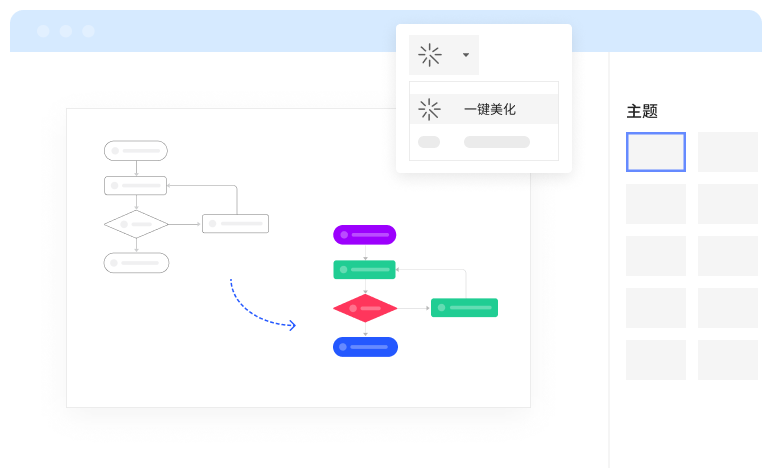 為了賦能繪圖效率,億圖圖示11.0版本還新增了“一鍵美化”功能,進(jìn)一步提升產(chǎn)品的易用性,真正做到“把簡單留給用戶,把復(fù)雜留給自己”。