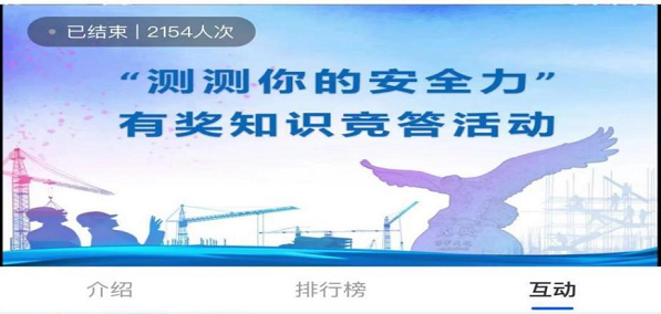 為切實(shí)提升公眾安全生產(chǎn)意識(shí)及知識(shí)水平,此次啟動(dòng)儀式特別準(zhǔn)備了“測(cè)測(cè)你的安全力”線上安全生產(chǎn)知識(shí)有獎(jiǎng)問答活動(dòng),題目涵蓋高處作業(yè)、生產(chǎn)自救、用電安全等安全生產(chǎn)知識(shí)要點(diǎn),寓教于樂。
