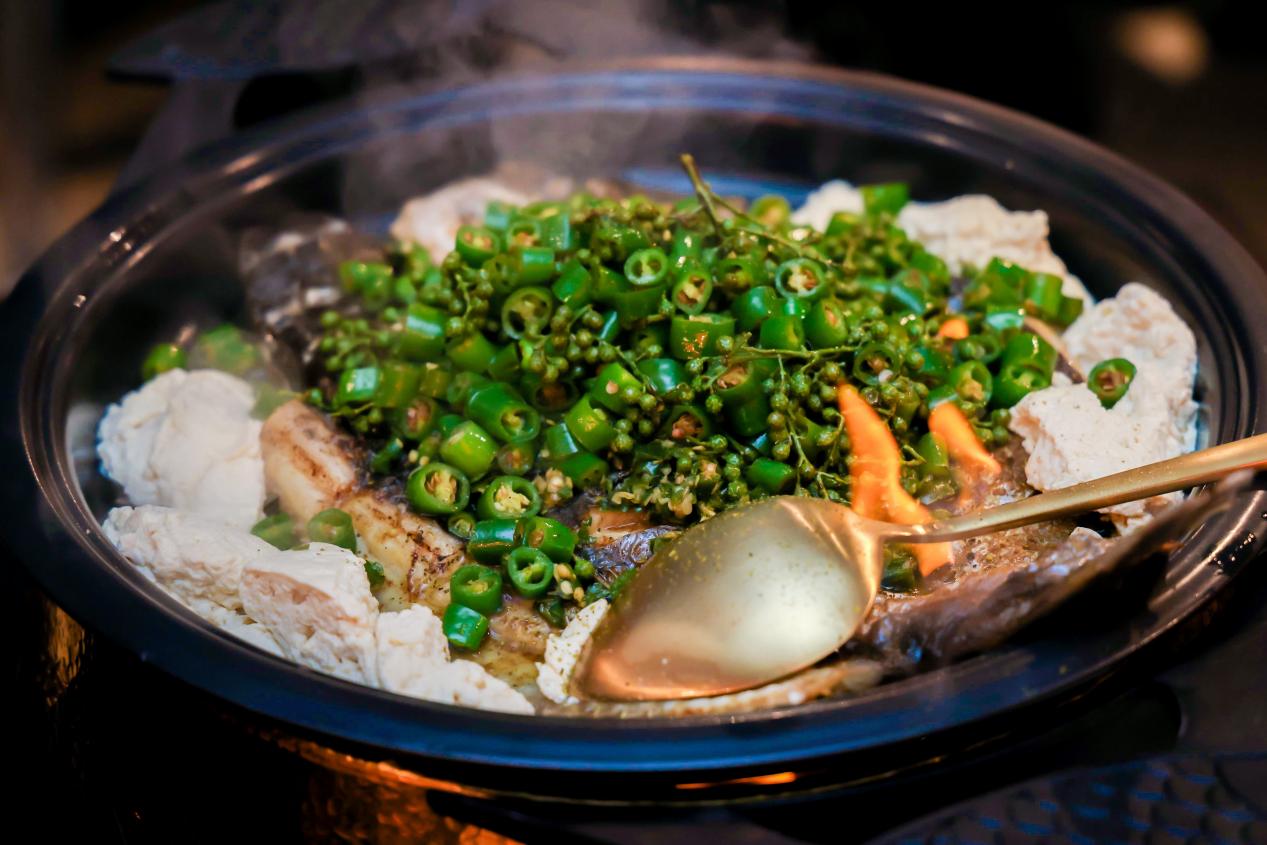 除了視覺(jué)感官外,探魚全新lab店的產(chǎn)品完全顛覆了探魚以往的產(chǎn)品結(jié)構(gòu)和產(chǎn)品體驗(yàn),所有的產(chǎn)品都以“極致釋放”為準(zhǔn)則,涼菜更冰爽,熱菜更火熱,更高的顏值、味道更加的讓人印象深刻,有好玩、驚喜的感覺(jué)。探魚的經(jīng)典產(chǎn)品“鮮青椒烤魚”也在lab店有口味上和形式上的升級(jí),味道上加重了核心的“爽麻”的口感,上菜形式也增加了添酒增香、點(diǎn)火炙烤等充滿儀式感的內(nèi)容。提高菜品品質(zhì)的同時(shí),也使顧客擁有了更別致的用餐體驗(yàn)。