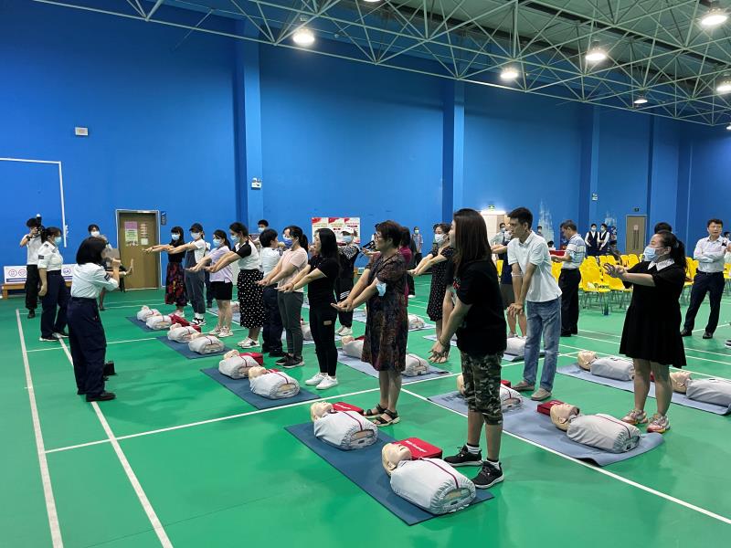 授牌儀式結(jié)束后,專業(yè)急救講師們在現(xiàn)場為社區(qū)的爸爸媽媽和孩子們開展了示范基地首期急救課程。