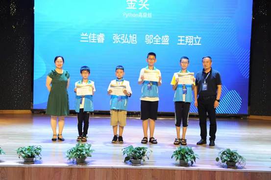 所有選手身體力行彰顯競(jìng)賽精神,一絲不茍。Python初級(jí)組和高級(jí)組競(jìng)賽中還產(chǎn)出一位雙料冠軍。來自青島賽場(chǎng)三年級(jí)的蘭佳睿選手,斬獲兩個(gè)組別冠軍,尤其在Python高級(jí)組競(jìng)賽中最后一分鐘反超,擊敗多位高年級(jí)選手,編程實(shí)力強(qiáng)勁!