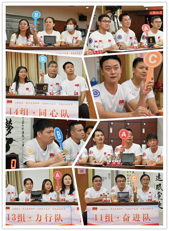 此次比賽分為初賽和決賽兩個(gè)階段,初賽為兩兩PK晉級(jí)制,來自社區(qū)黨委下屬各黨支部、轄區(qū)各共建單位等組成的14支代表隊(duì)分七組進(jìn)行了激烈的角逐,最終7支隊(duì)伍脫穎而出,登上決賽擂臺(tái)。
